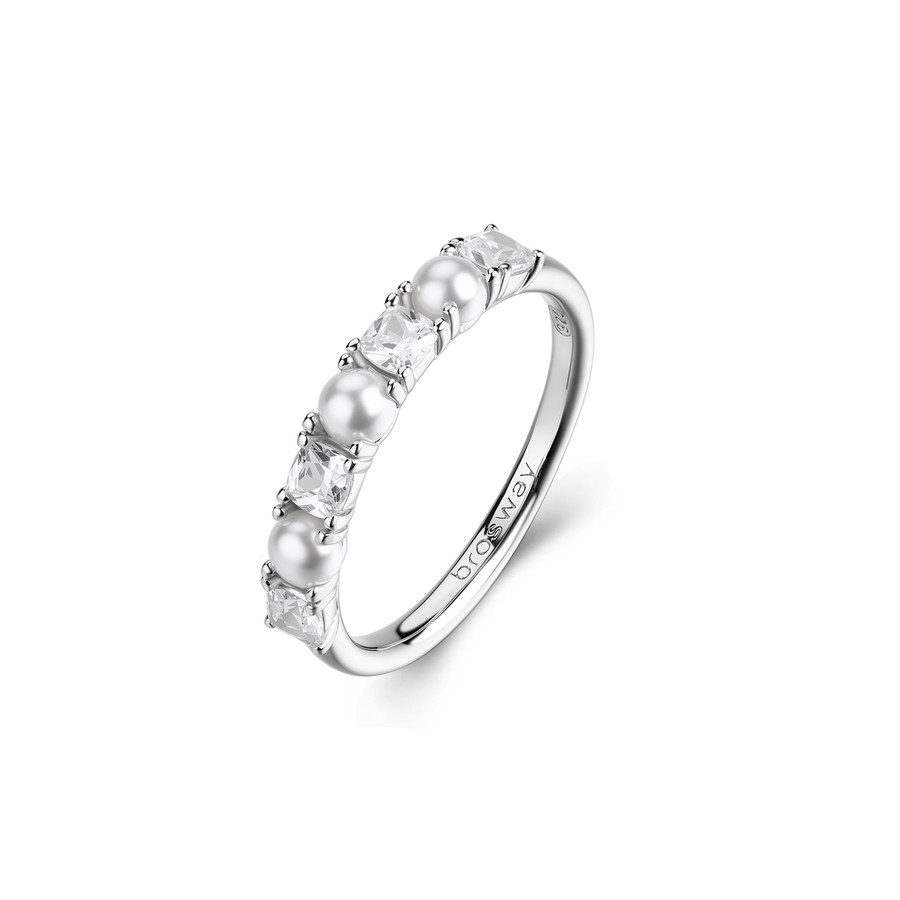 Anello FANCY in argento 925/1000 rodiato, con perle e cubic zirconia white