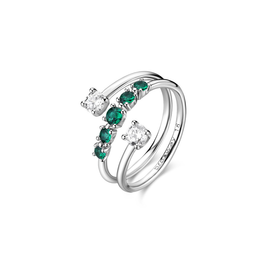 Anello in argento rodiato 925‰ con cubic zirconia chiari e cubic zirconia colore emerald.