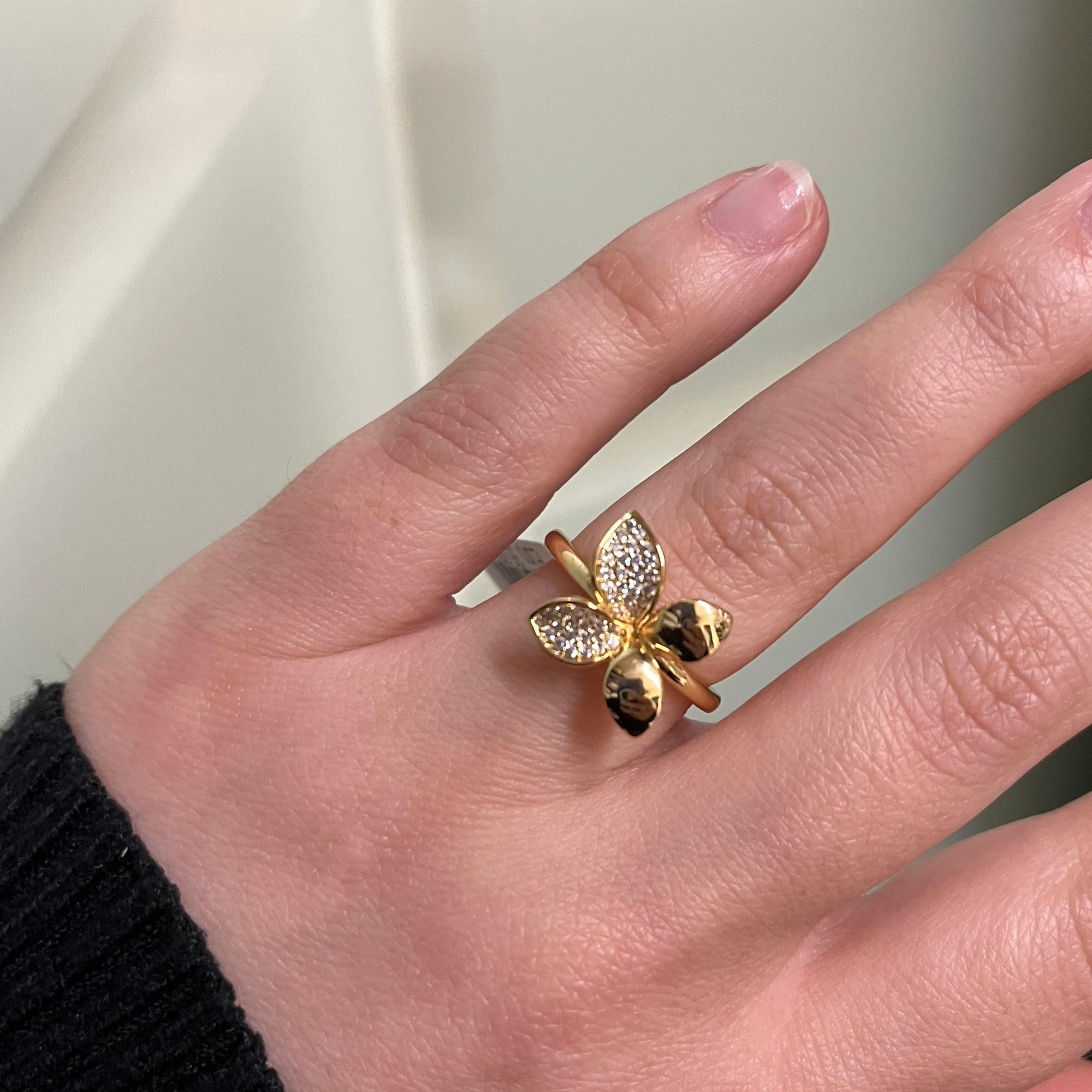Anello da donna in ottone color dorato con zirconi.