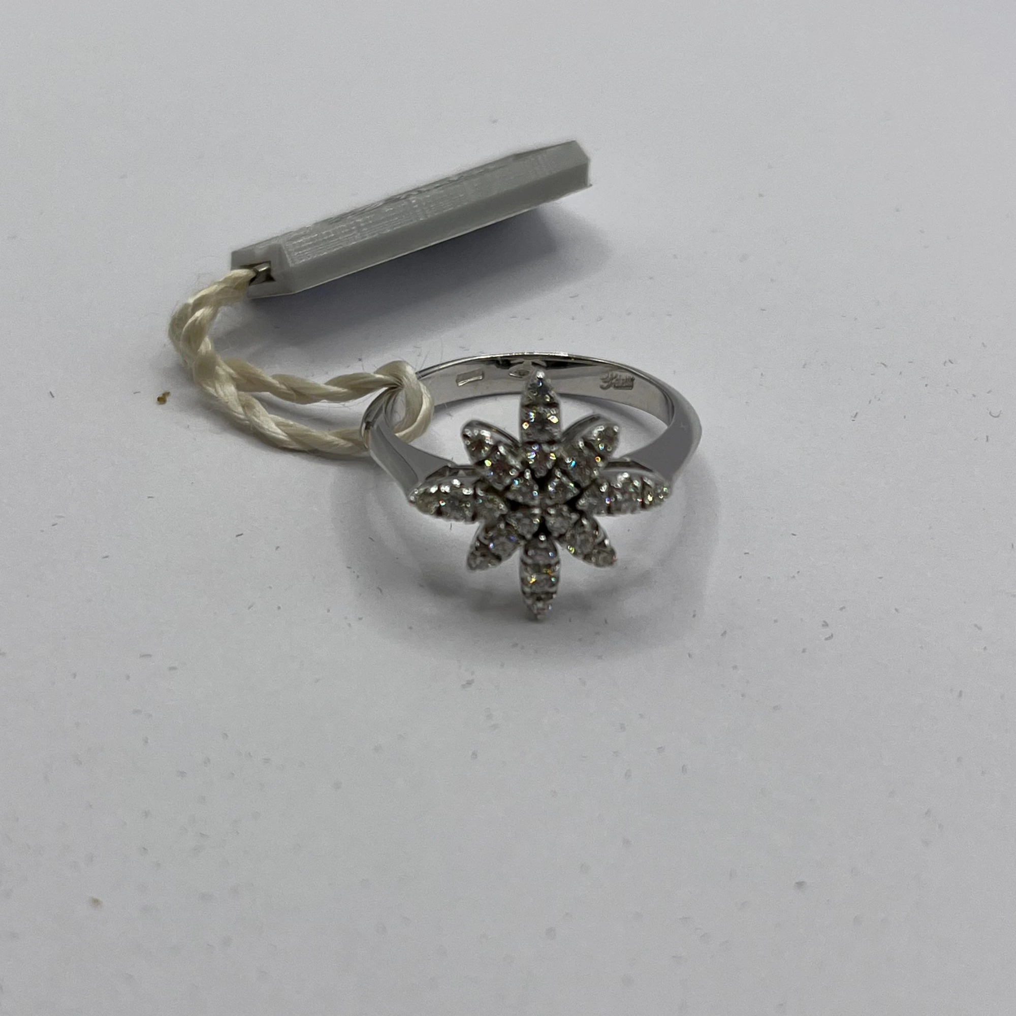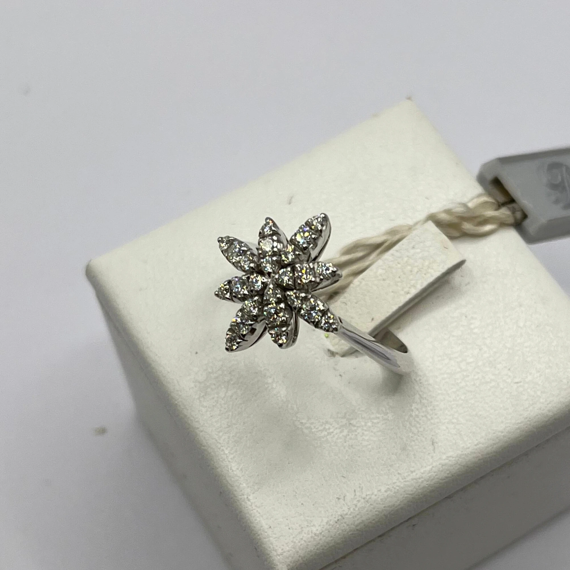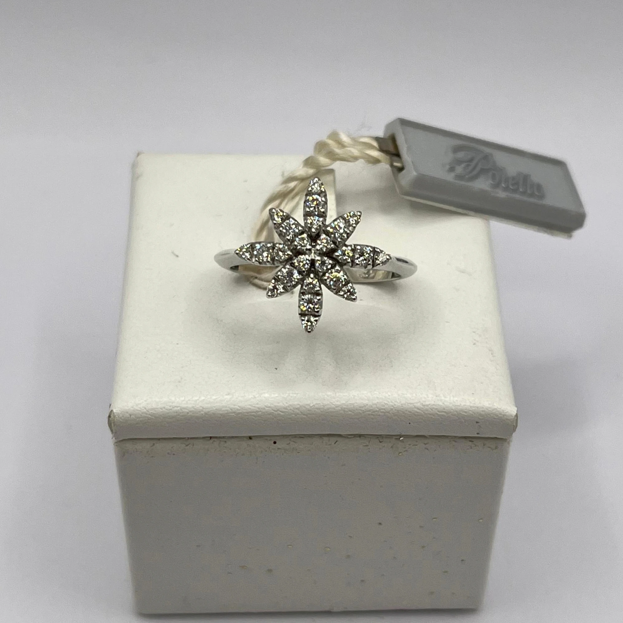 Anello da donna in oro bianco 18kt con centrale a forma di stella con brillanti.
