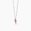 Bracciale in argento rodiato con catena forzatina, inserti smaltati multicolor e cornetto portafortuna smaltato rosa.
