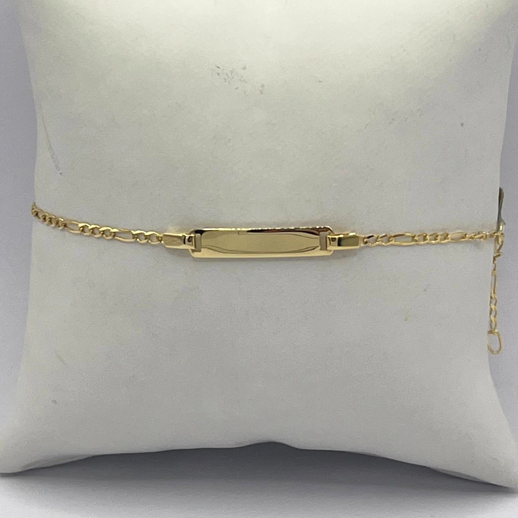 Bracciale da bambino in oro giallo 9 kt con placca centrale per incisione personalizzata.