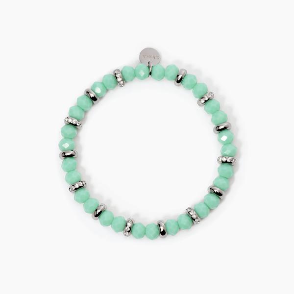 Bracciale elastico in acciaio 316L, con glass verde Ø 6 mm e cristalli bianchi Ø 1.5 mm, lunghezza 17.5 cm