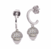 Bracciale rodiato a maglie dall’effetto diamantato con pendente centrale dalla forma piramidale decorato da pavè di zirconi.