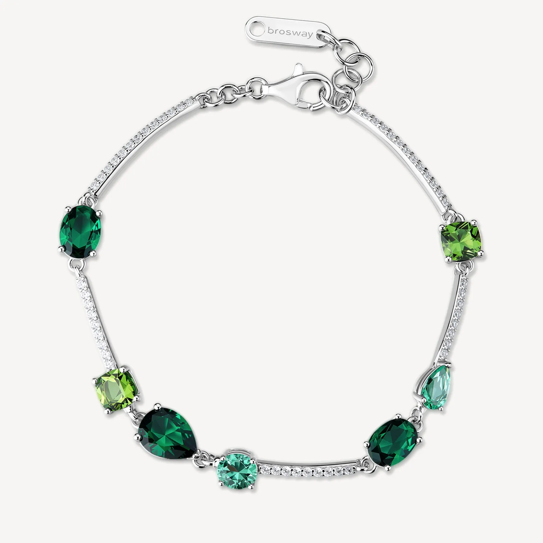 Bracciale semirigido in argento rodiato 925‰ con cubic zirconia chiari e cubic zirconia colore emerald.