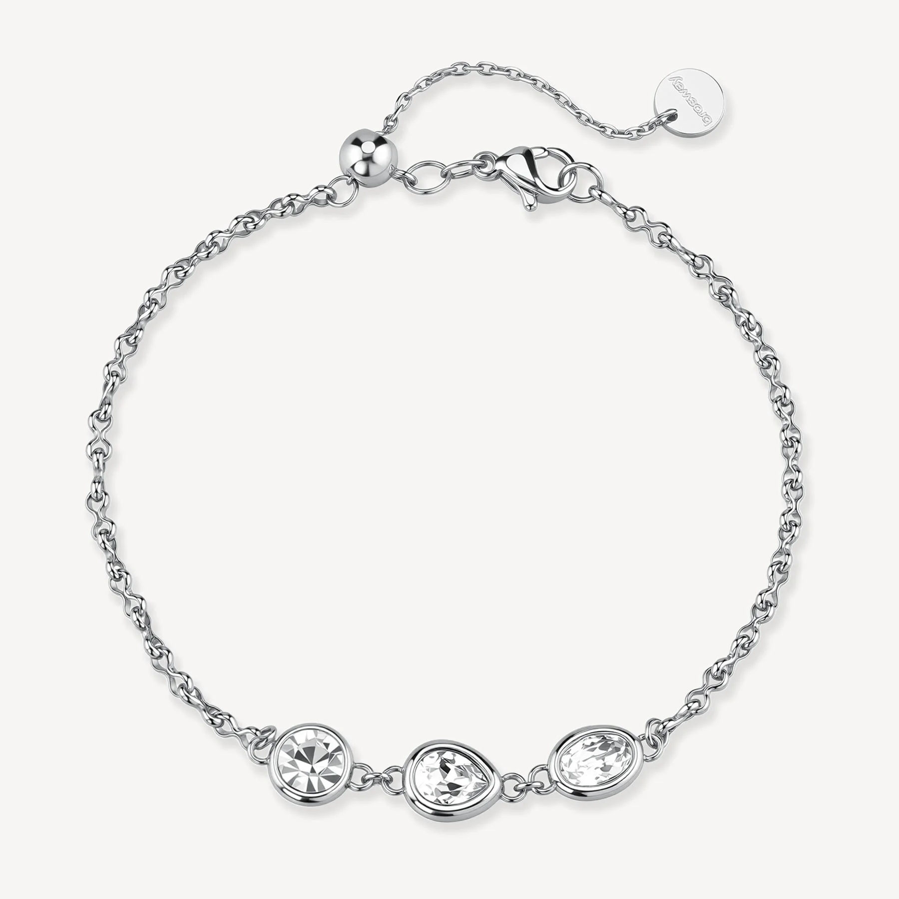 Bracciale in acciaio 316L con cristalli a forma di goccia, ovale e tondo.