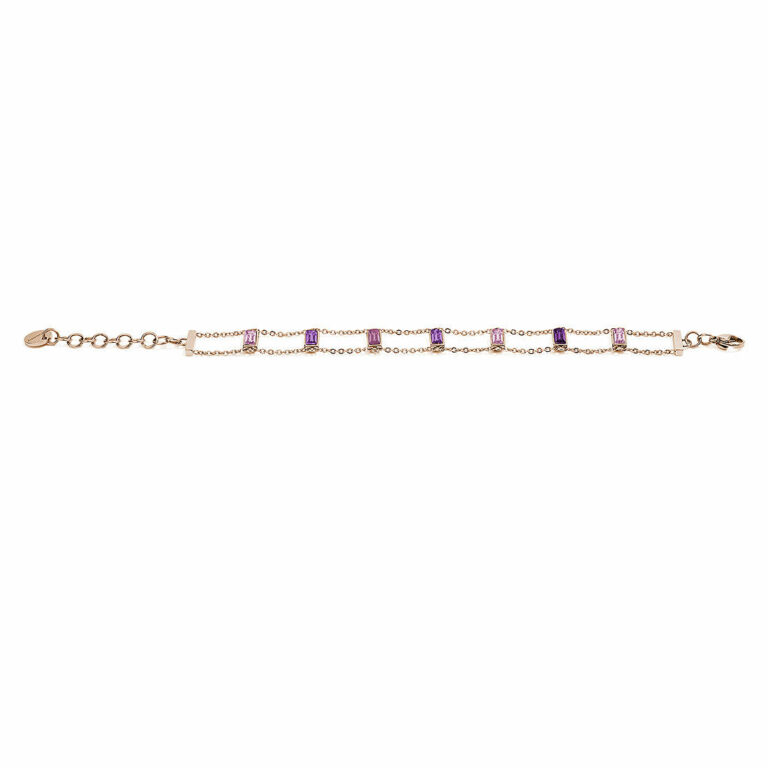 Bracciale tennis in argento placcato oro rosa 18k con zirconi multicolor.