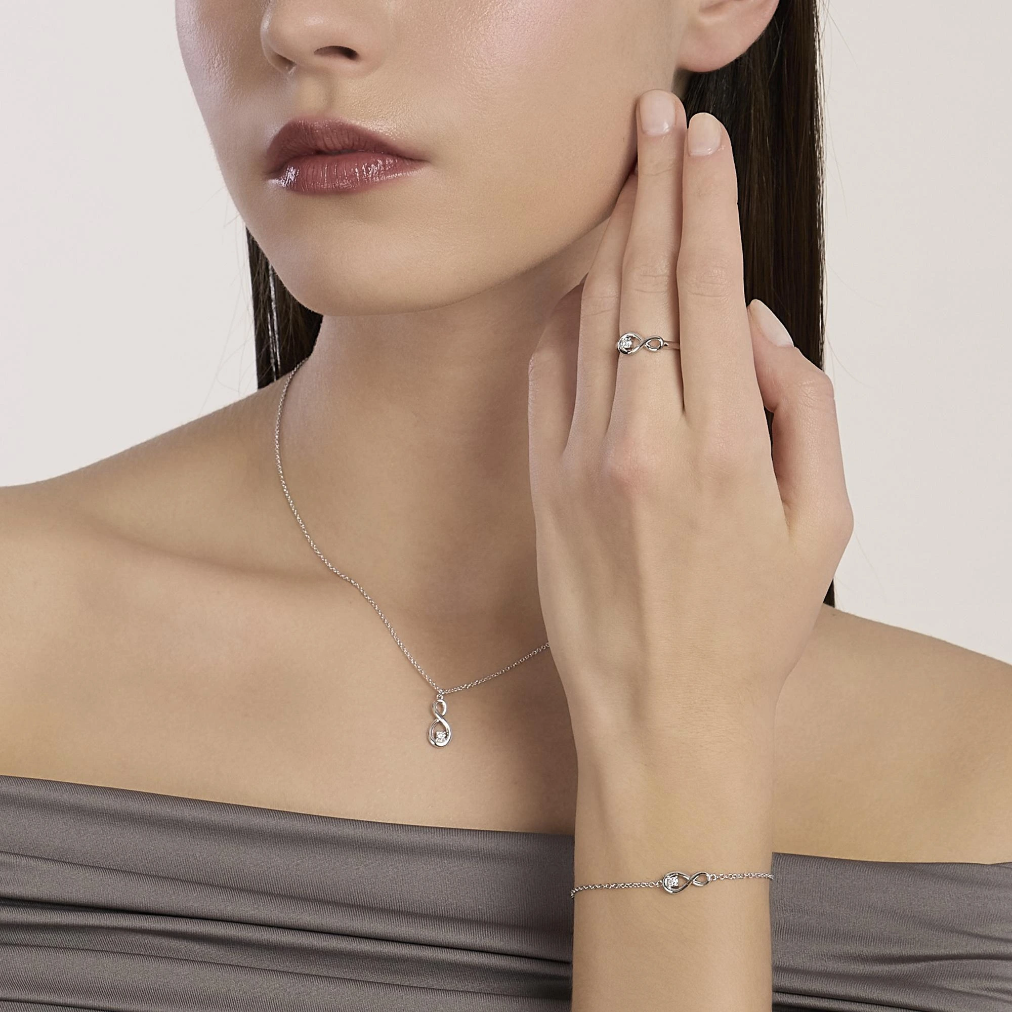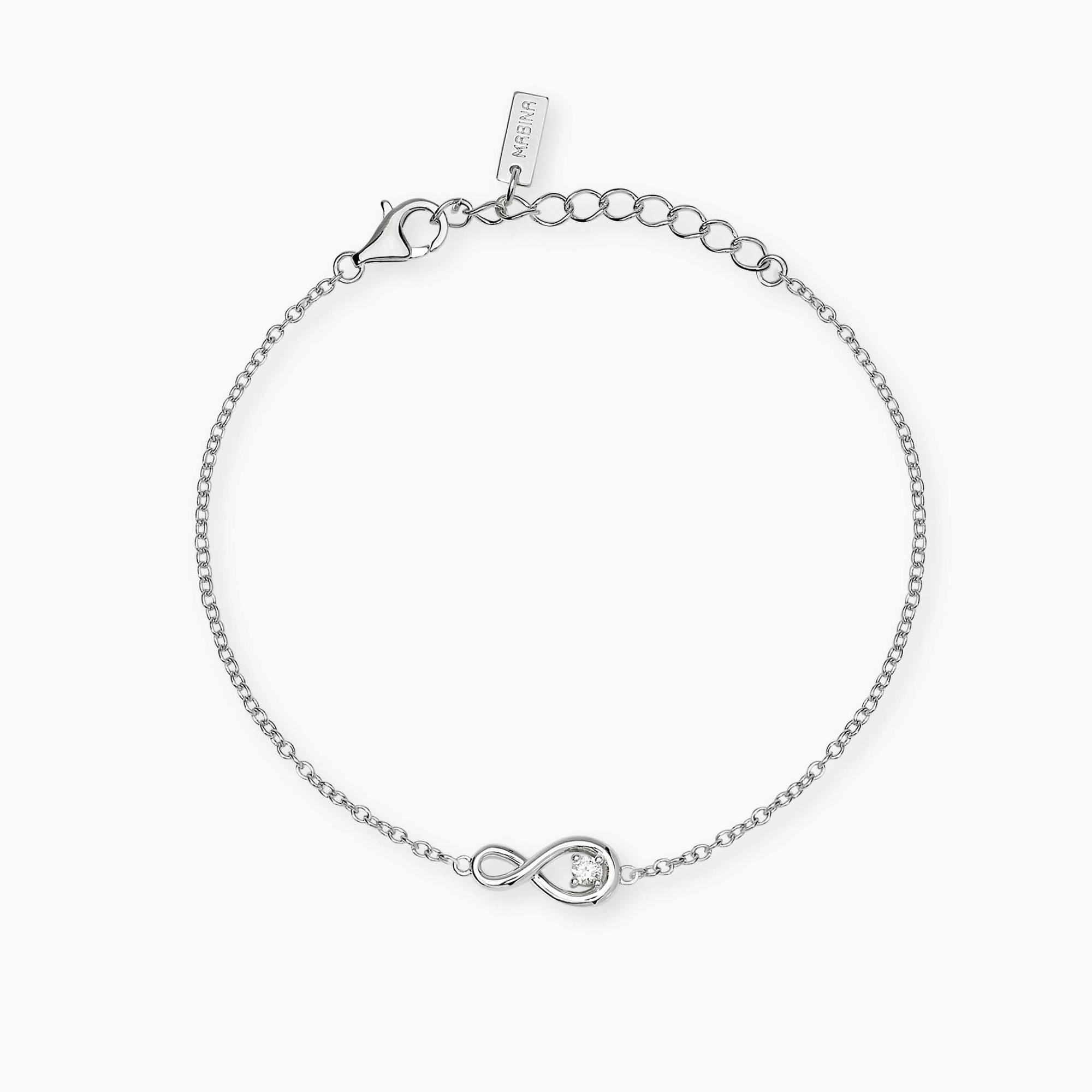 Bracciale regolabile con catena rolò in argento rodiato con infinito e diamante lab-grown 0,06 ct.