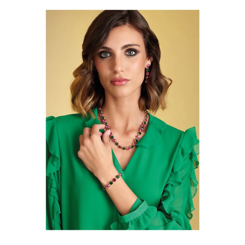 Bracciale dorato con cristalli, chiusura regolabile con moschettone.