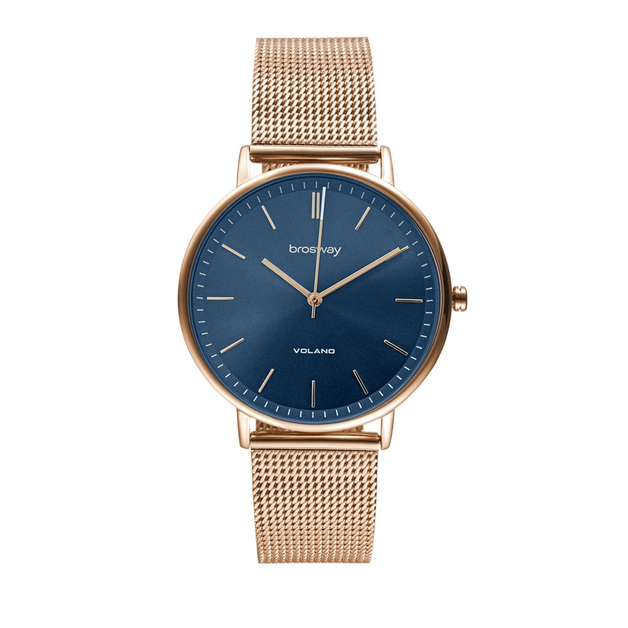 Orologio in acciaio 304, finitura pvd oro rosa 14K e quadrante blu.