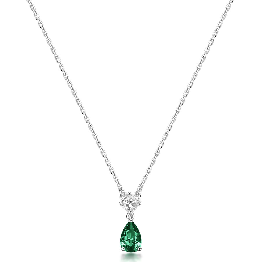 Collana girocollo in argento rodiato 925‰ e pendente con square cubic zirconia e pear cubic zirconia colore emerald.