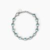 Girocollo in acciaio 316L con catena forzatina 2.5 mm, acquamarina sintetica 6 Ø mm e cristalli bianchi Ø 3 mm, lunghezza regolabile da 38 a 43 cm.