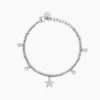 Girocollo in acciaio 316L con catena rolò 1.5 mm e pendente 9.5×16 mm con stella 9.5×9.2 mm e cristalli Ø 3 e 1.25 mm, lunghezza regolabile da 40 a 45 cm, chiusura a moschettone.