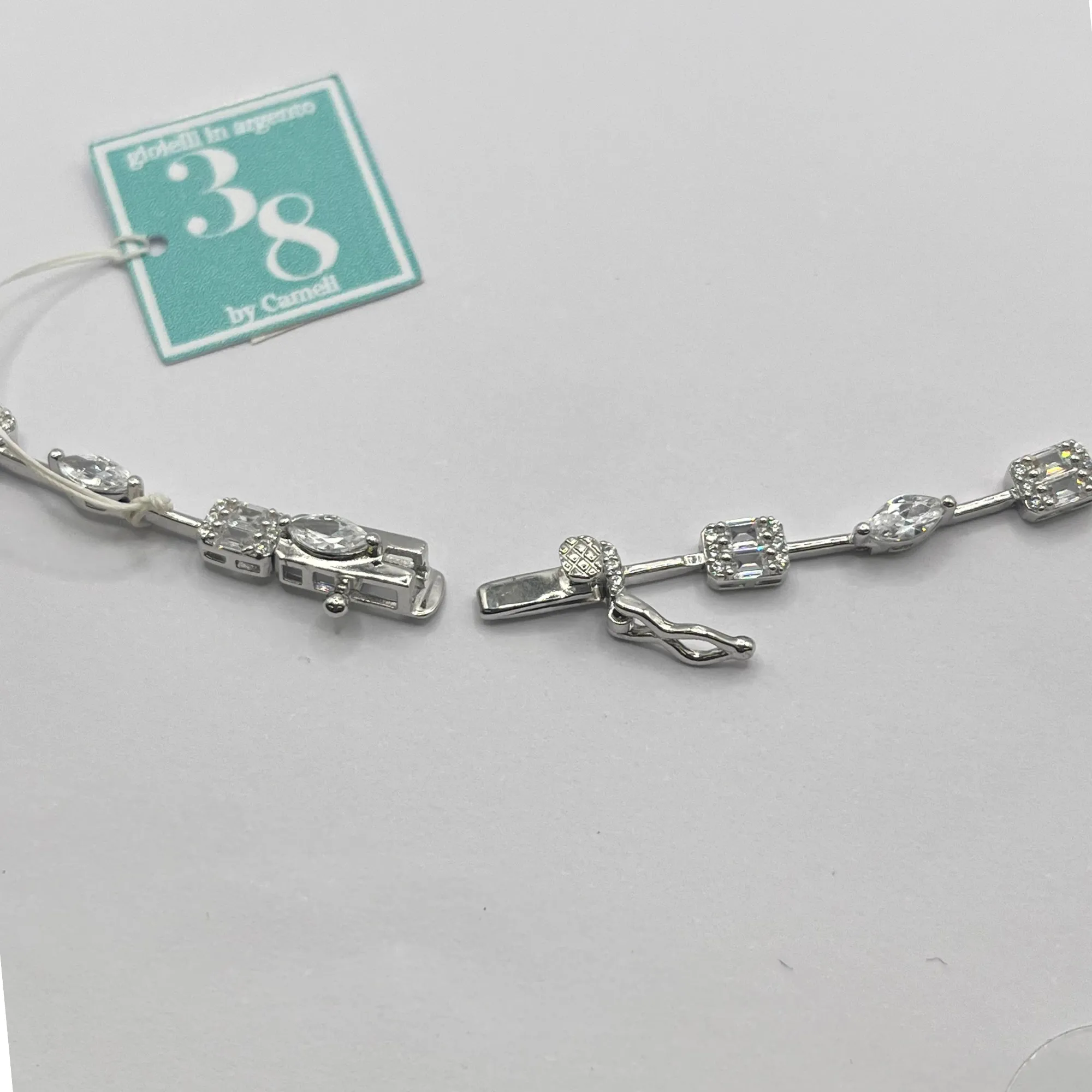 Collana da donna in argento 925 anallergico con pietre bianche di varie forme e 3 pietre verdi.