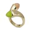 Collana placcata oro giallo con pendente composto da elementi a goccia e cristalli piramidali color olivine e corniola.