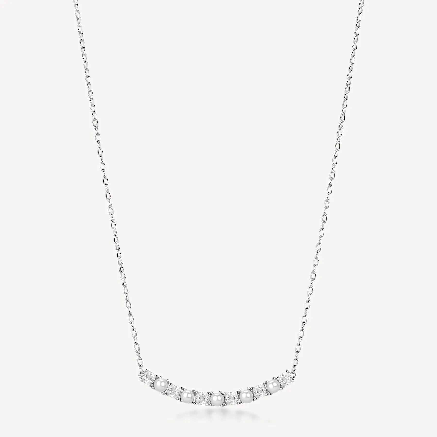Collana girocollo in argento rodiato 925‰ con perla di conchiglia e cubic zirconia.