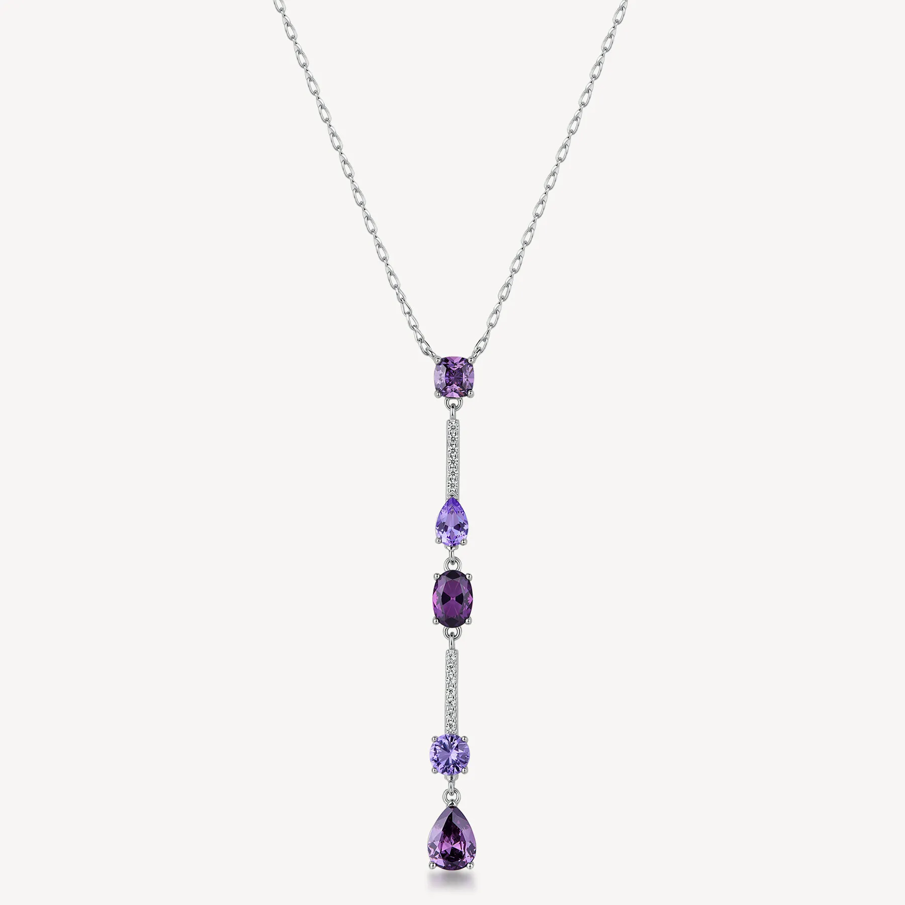 Collana girocollo in argento rodiato 925‰ e pendente con cubic zirconia chiari e cubic zirconia colore amethyst.