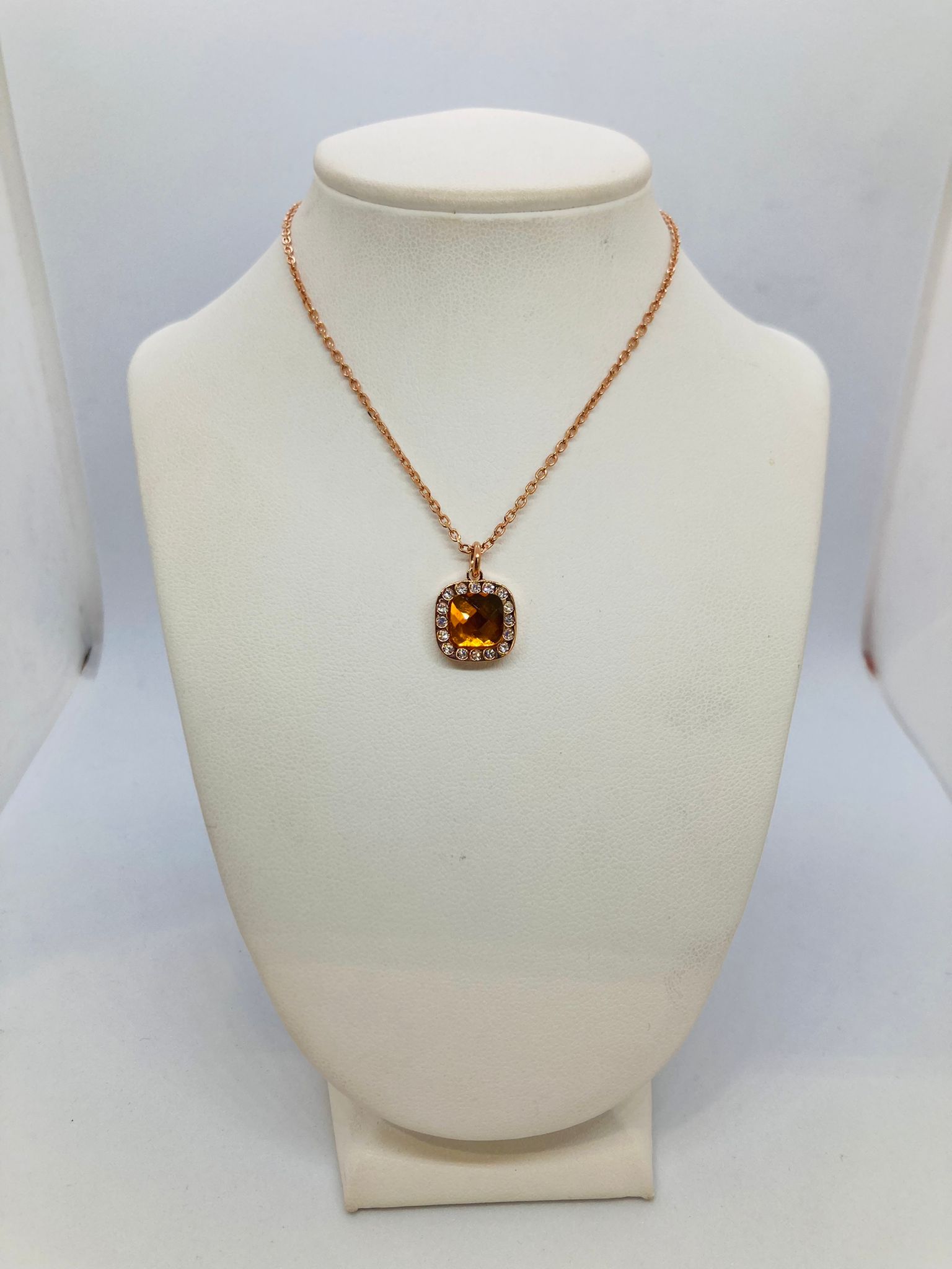 Collana girocollo donna DVCCIO in argento, color oro rosa, con pendente con pietra color arancione e strass.