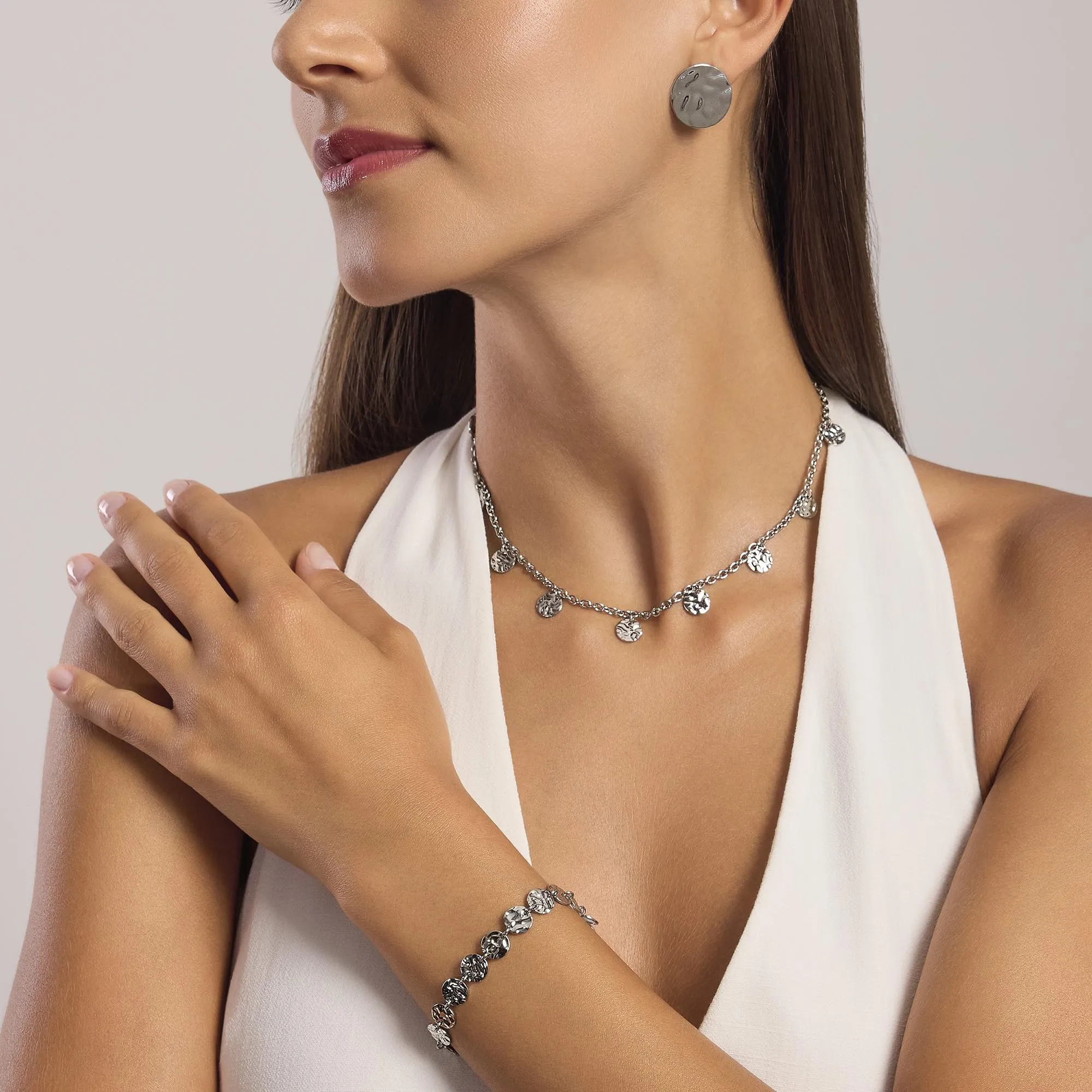 Girocollo regolabile con elementi pendenti effetto martellato.