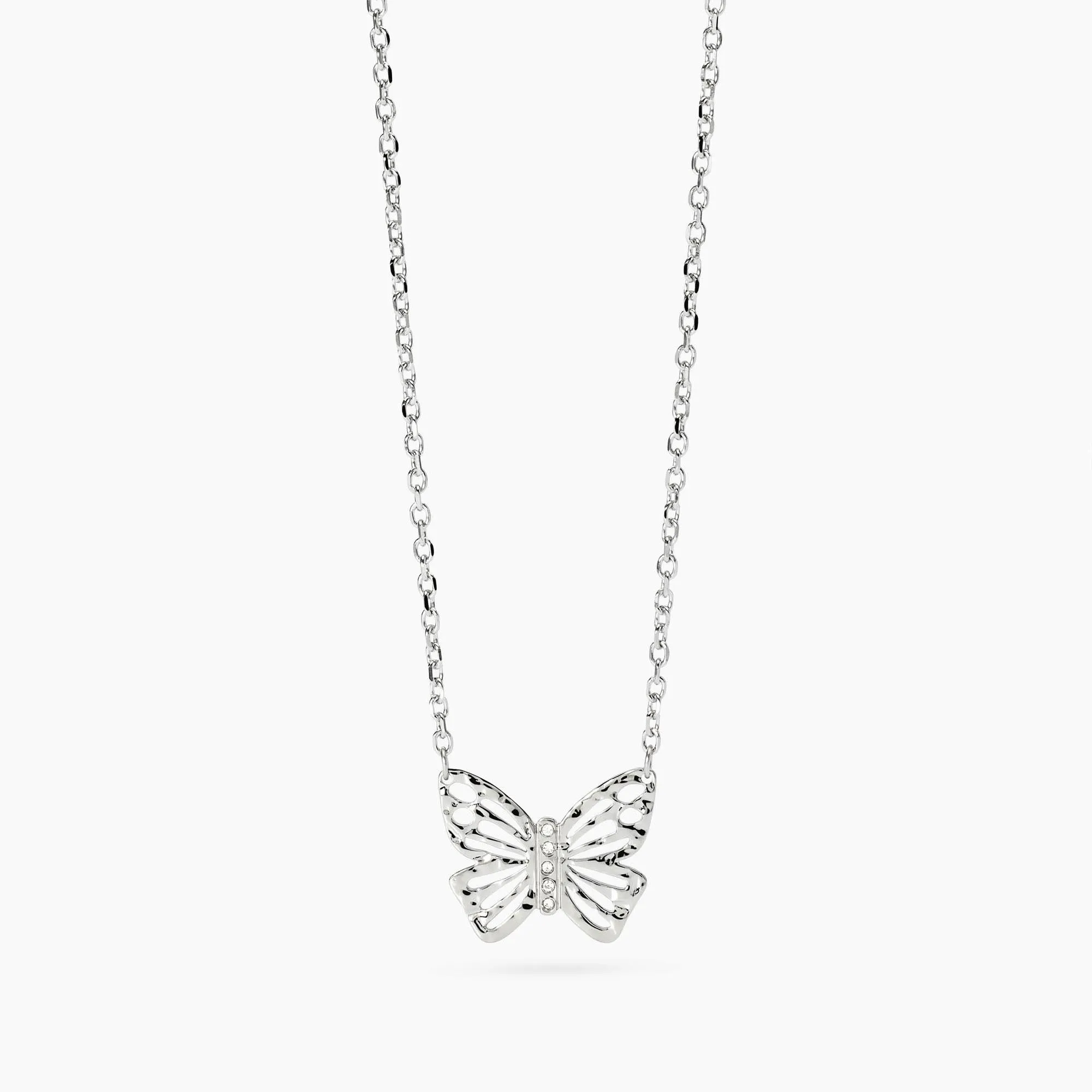 Girocollo regolabile in acciaio con catena forzatina diamantata e farfalla centrale in acciaio martellato e cristalli.