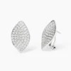Girocollo in argento rodiato con catena rolò e foglia in pavè di zirconi bianchi.