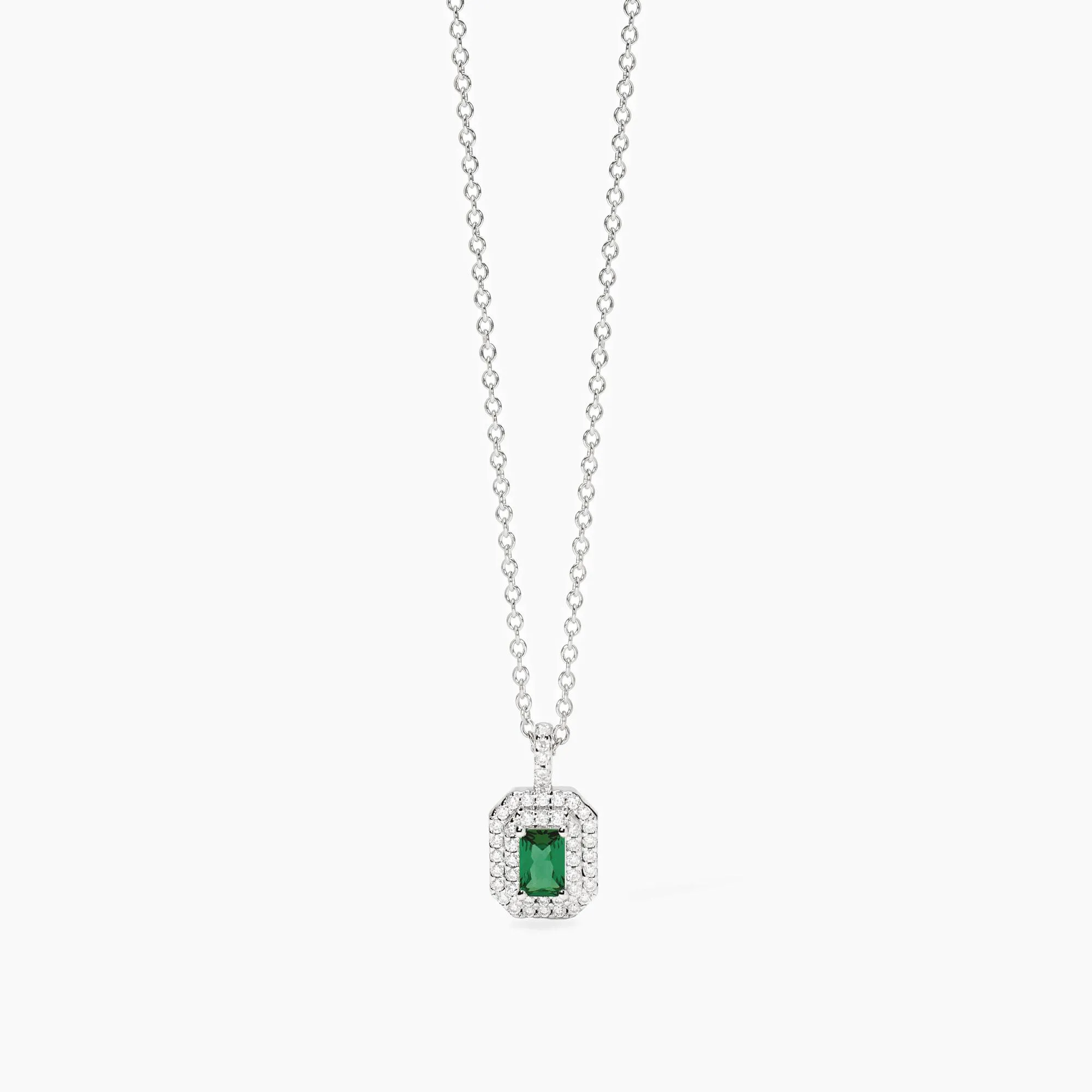 Girocollo in argento rodiato con catena rolò e ciondolo in smeraldo sintetico e zirconi bianchi.