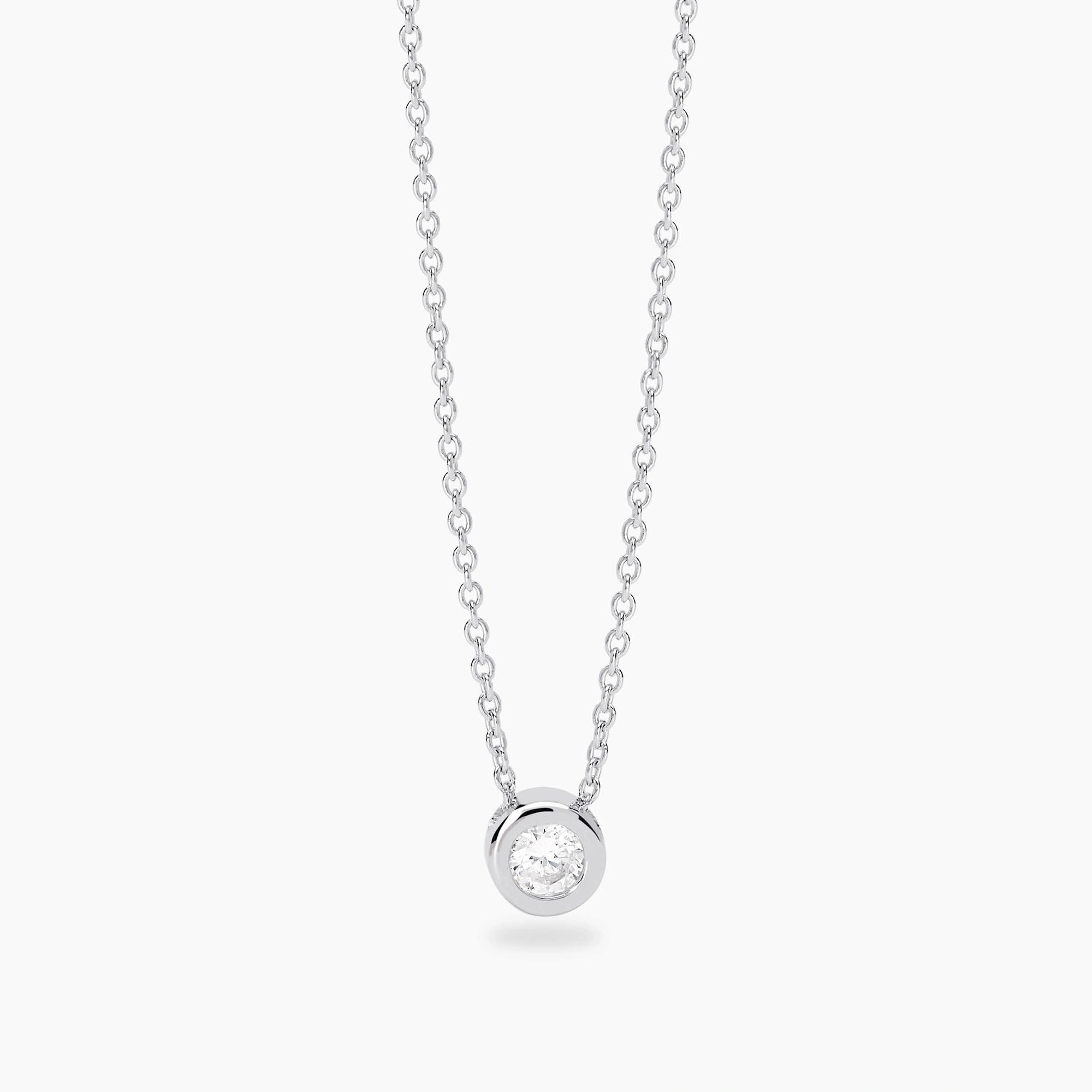 Girocollo punto luce regolabile con catena rolò in argento rodiato con diamante lab-grown 0,18 ct.