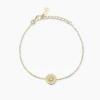 Girocollo regolabile in argento rodiato placcato oro 18K con catena rolò diamantata e ciondolo occhio con zircone.