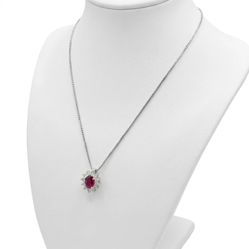 Pendente modello Kate con pietra centrale ovale rubino con diamantini 0.28 ct.