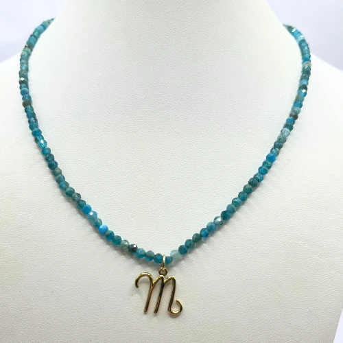 Collana girocollo con pietre naturali semipreziose azzurre.