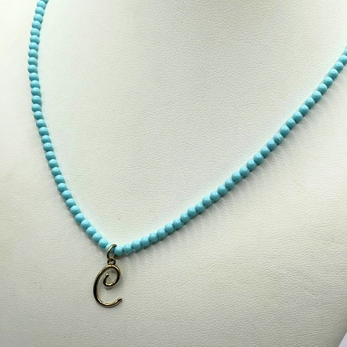 Collana girocollo donna con pietre naturali semipreziose celesti.