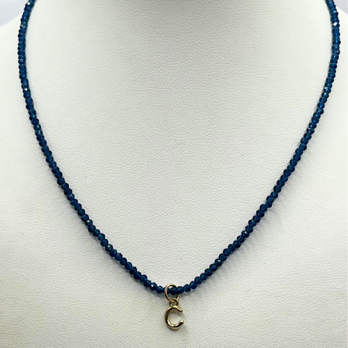 Collana girocollo con pietre naturali semipreziose blu scuro.