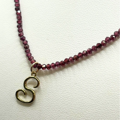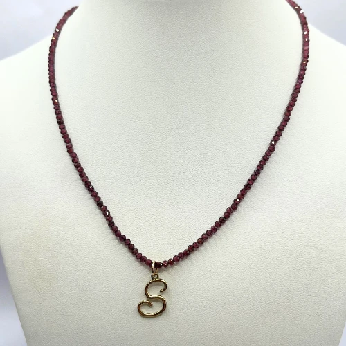 Collana girocollo con pietre naturali semipreziose color bordeaux.