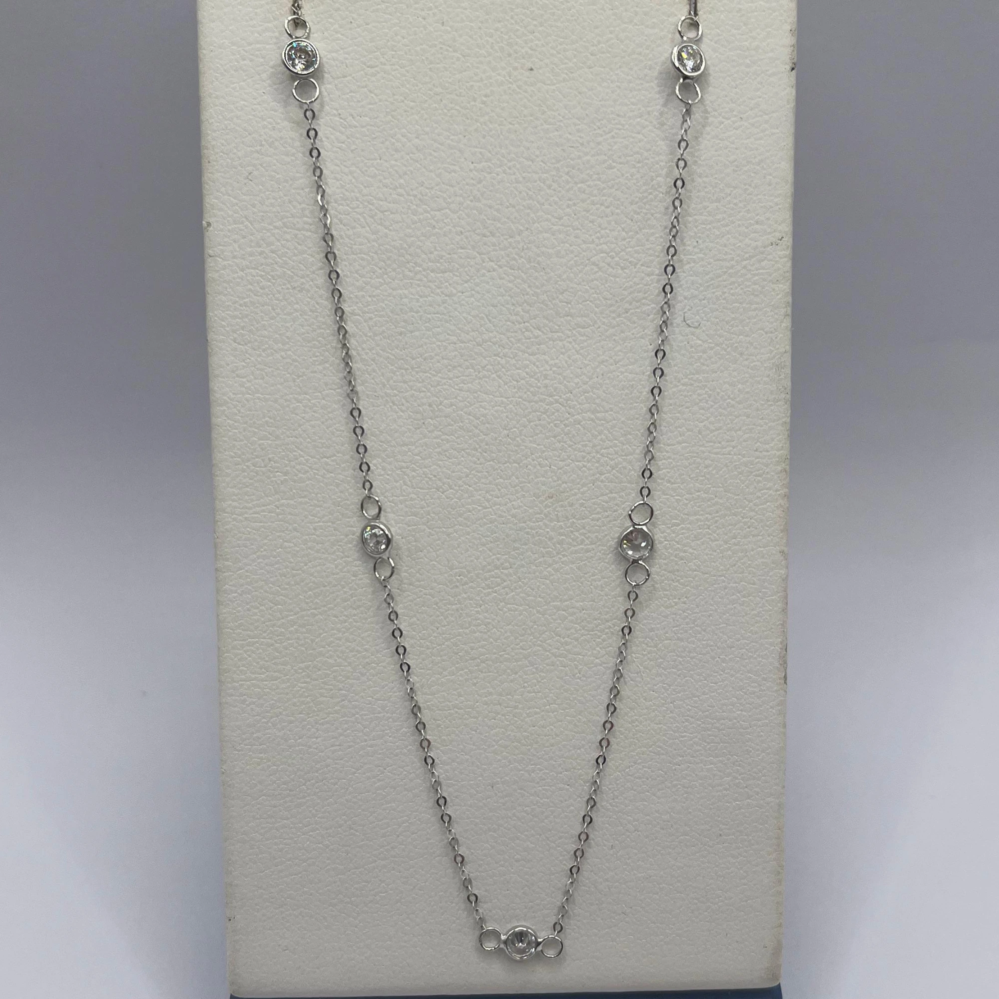 Collana girocollo da donna in oro bianco 9kt con zirconi.