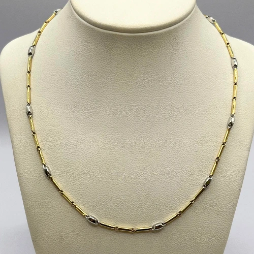Collana in oro giallo 18 kt con elementi in oro bianco 18kt.