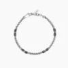 Collana in acciaio 316L con catena veneta 3.5 mm e cilindri di ceramica nera 4xØ4 mm, lunghezza 50 cm, chiusura a moschettone.