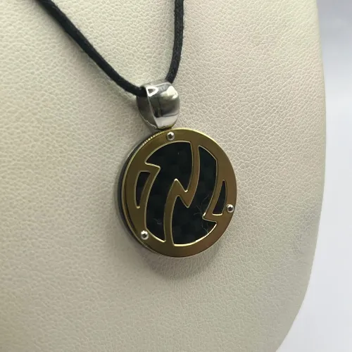 Collana Chimento con ciondolo in oro 18kt, acciaio e carbonio.
