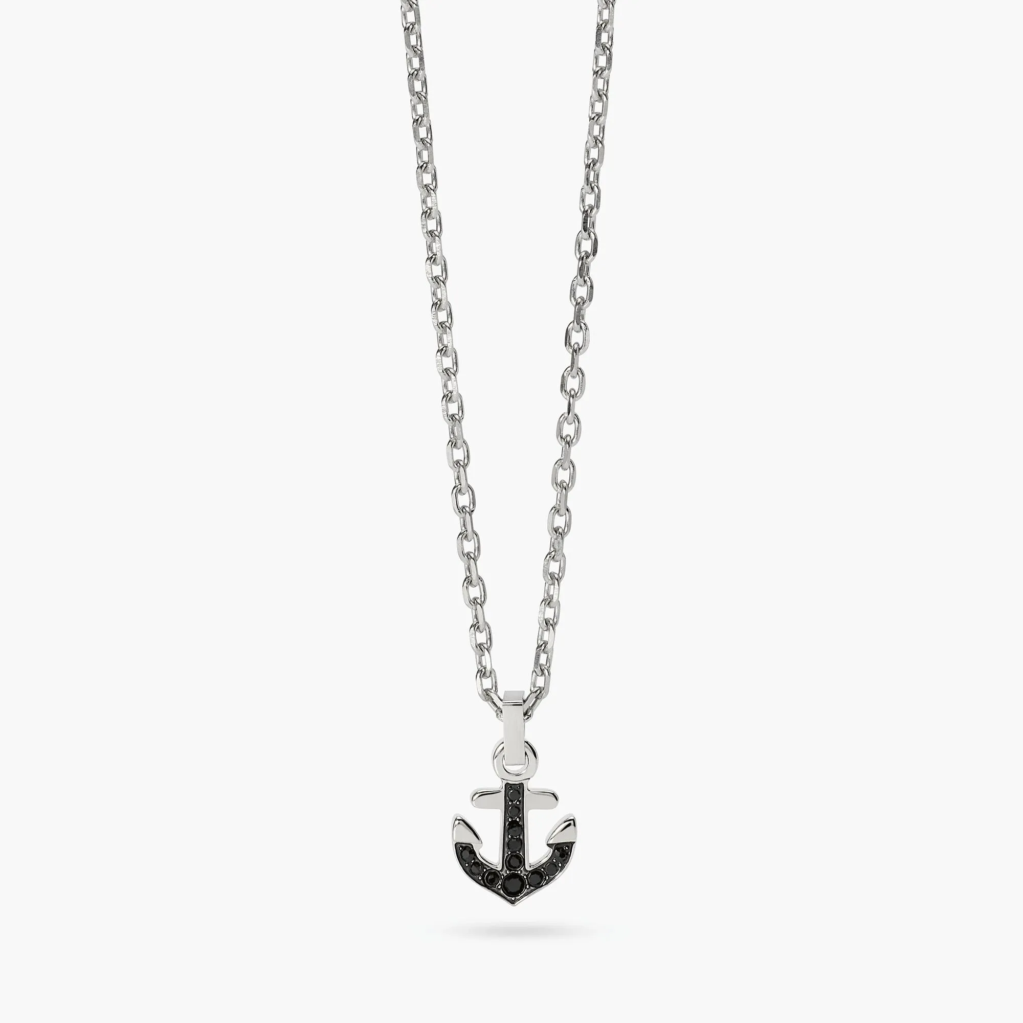 Collana regolabile con catena forzatina diamantata in acciaio con ciondolo ancora in cristalli neri.