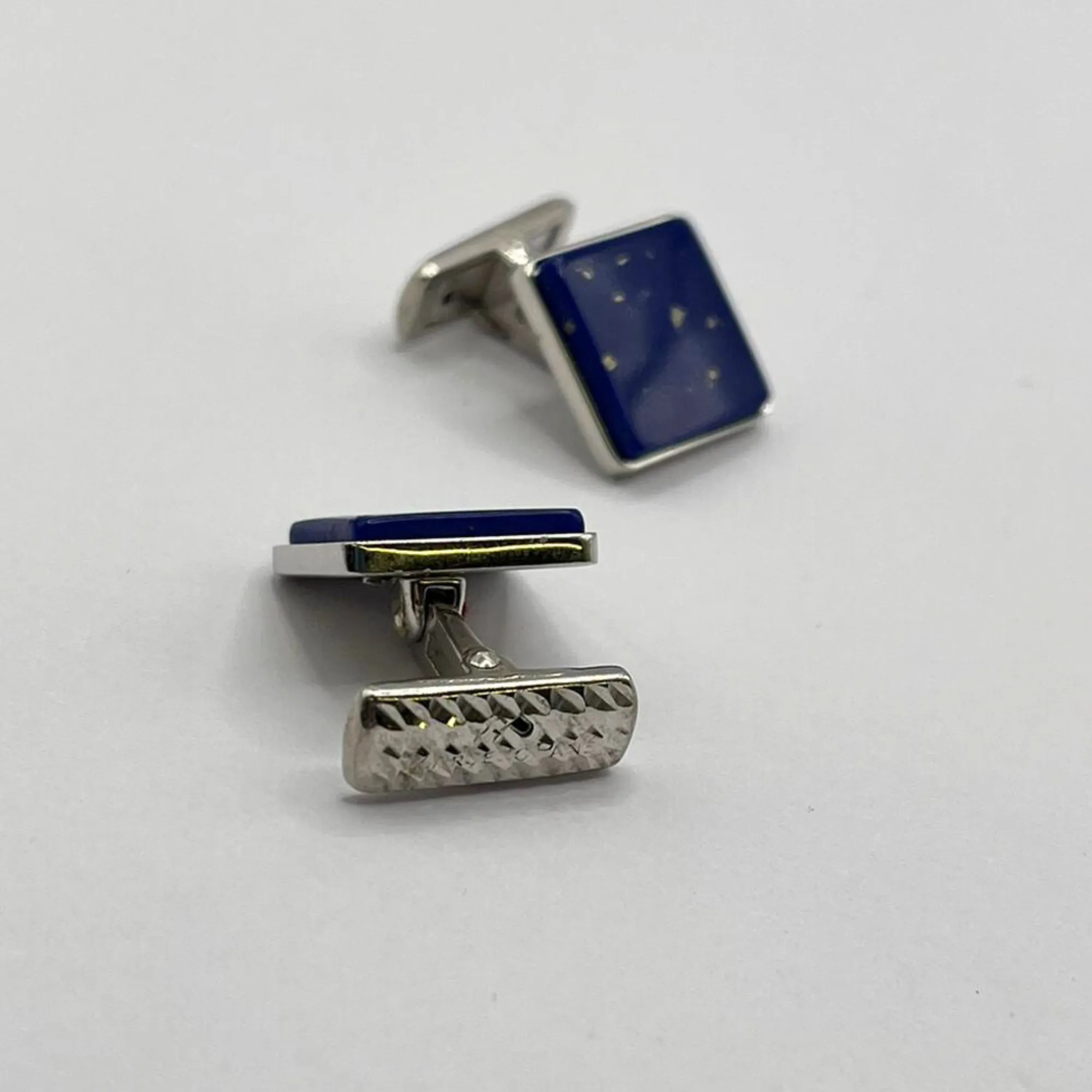 Gemelli in argento 925 di forma quadrata con pietra lapislazzuli blu.