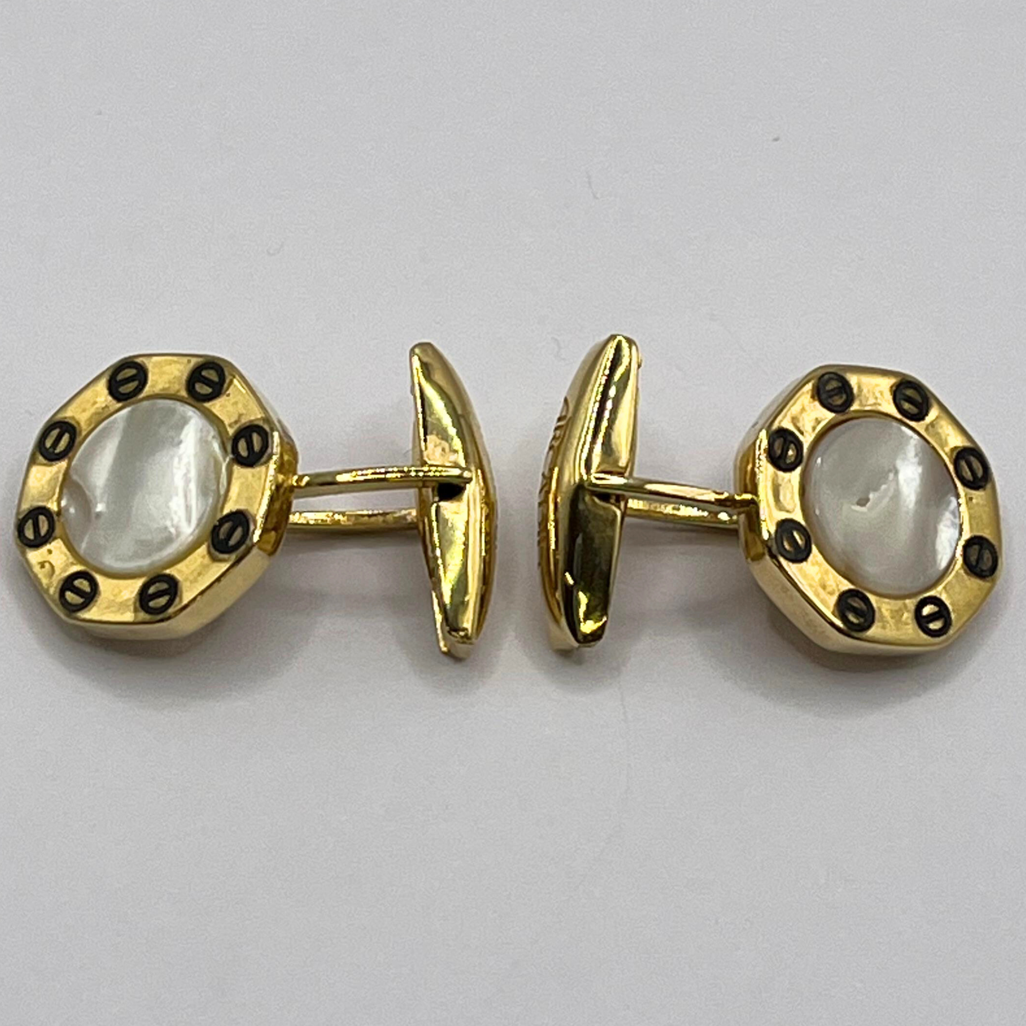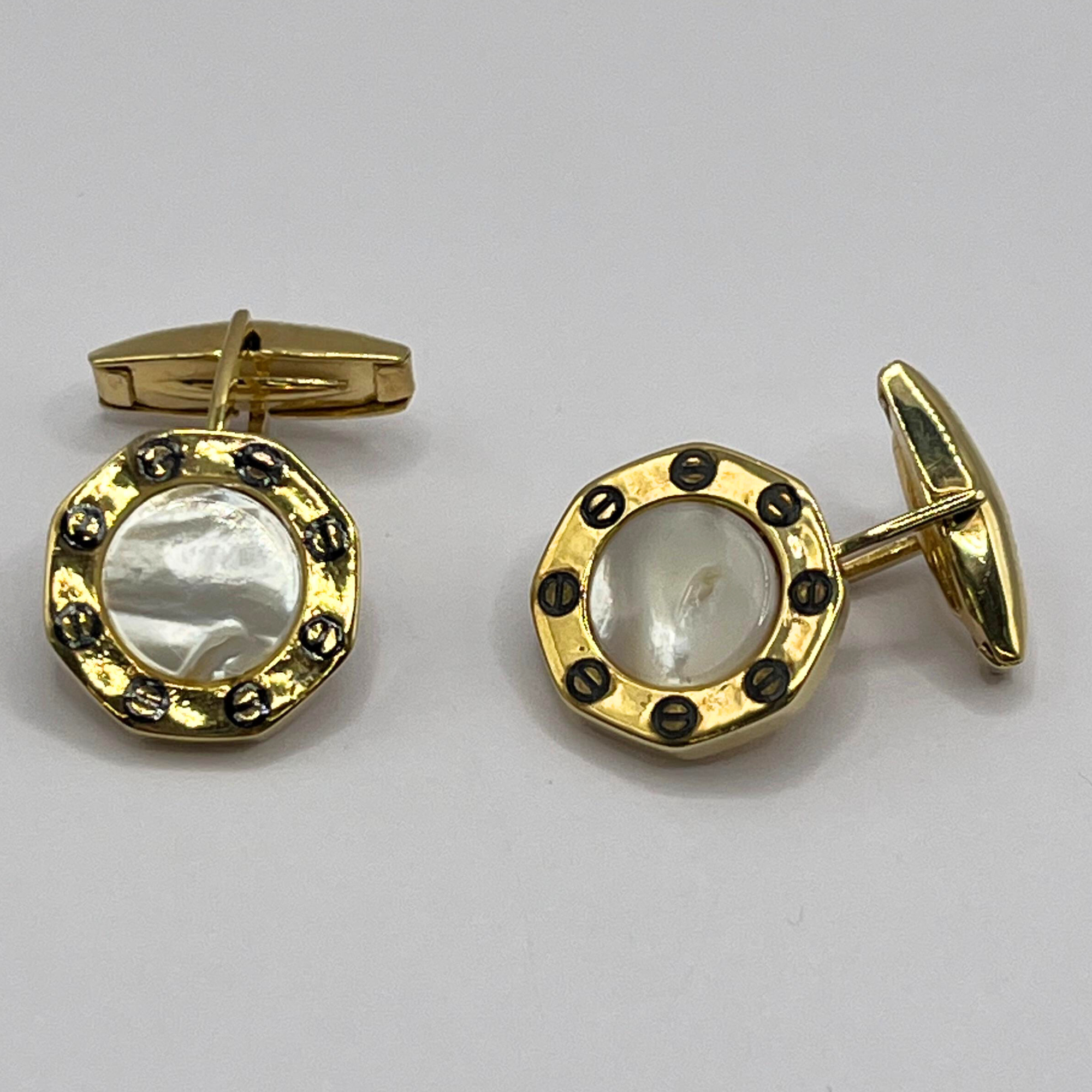 Gemelli in argento 925 con finitura in oro giallo e madreperla.