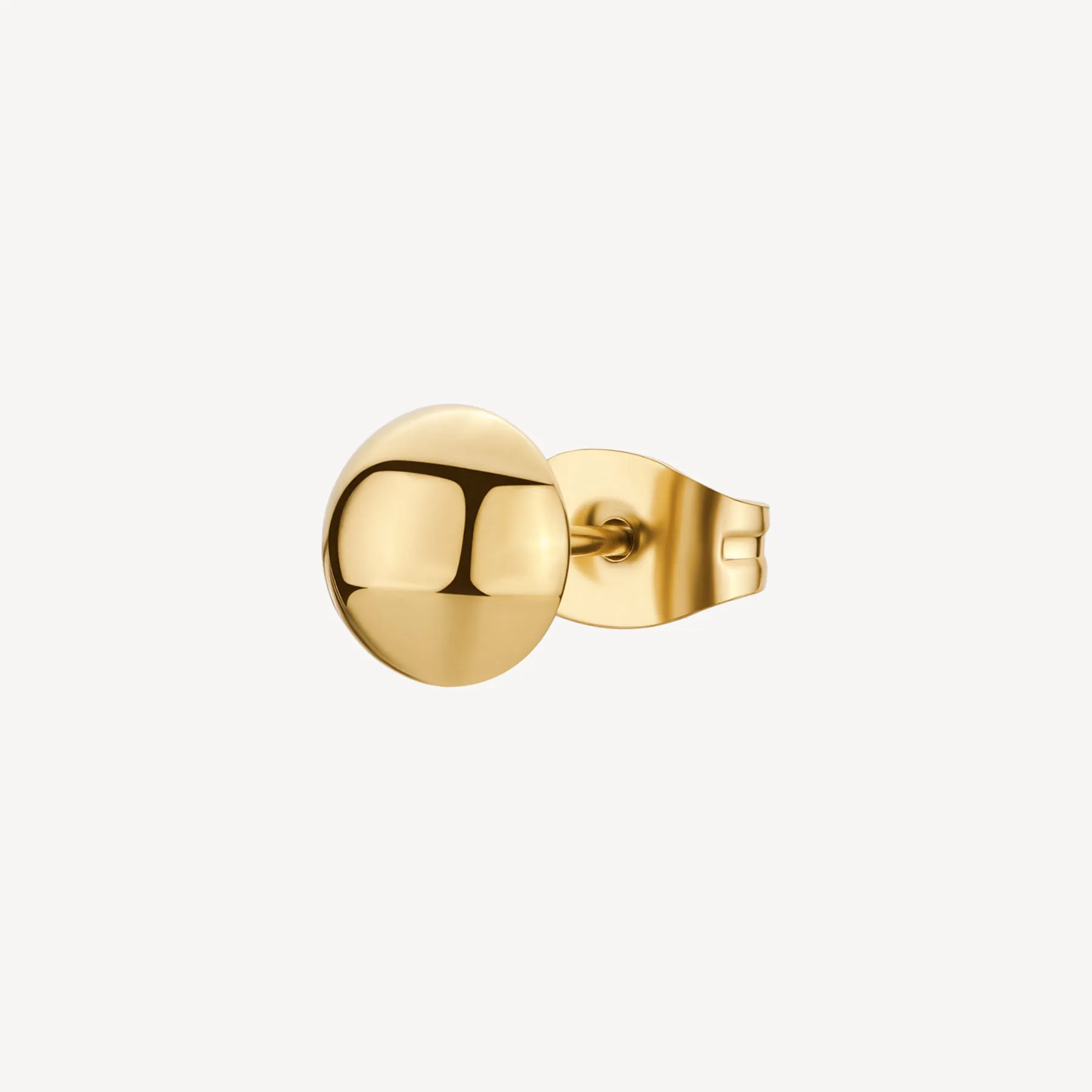 Orecchino singolo a lobo in acciaio 316L e finitura pvd oro 14K.