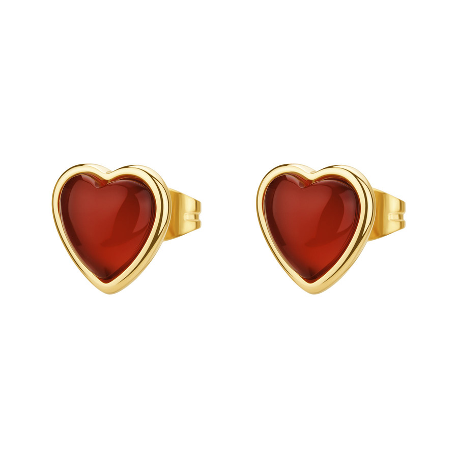 Orecchini a lobo in acciaio 316L e finitura pvd oro 14K con agata rossa.