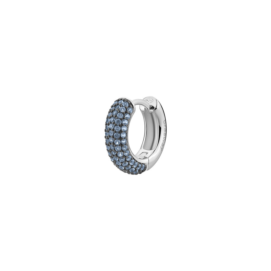 Orecchino singolo a cerchio in argento rodiato 925‰ con galvanica colore rutenio e cubic zirconia colore light sapphire.