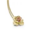 Orecchini con chiusura a clip col buco a forma di rosa in oro giallo, con sfumature in oro rosè e diamanti.