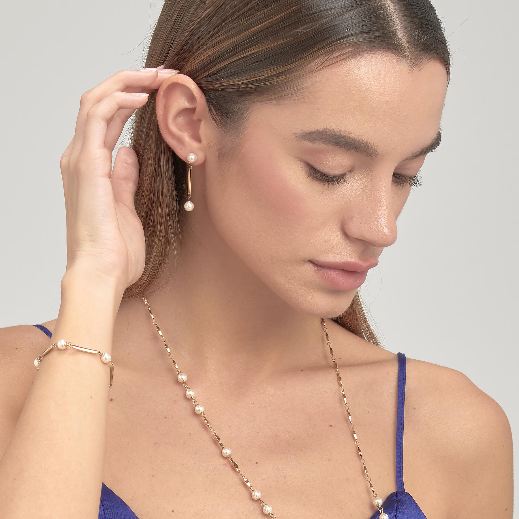 Orecchini pendenti in acciaio 316L e finitura pvd oro 14K con perle.