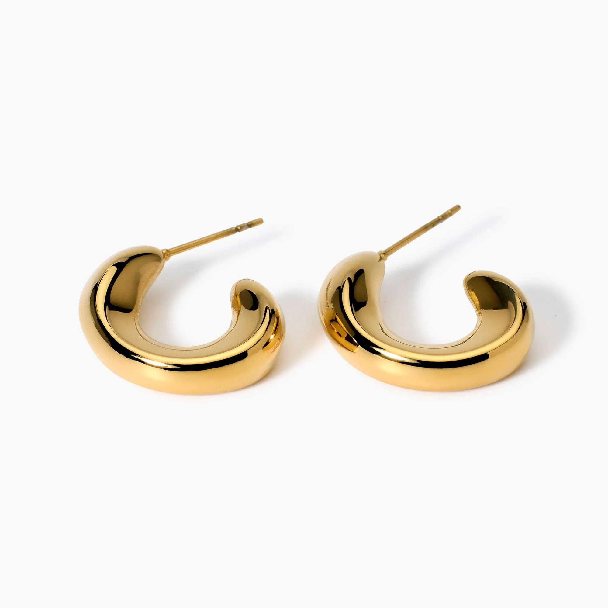 Orecchini in acciaio dorato a forma di mezzaluna arricciata.