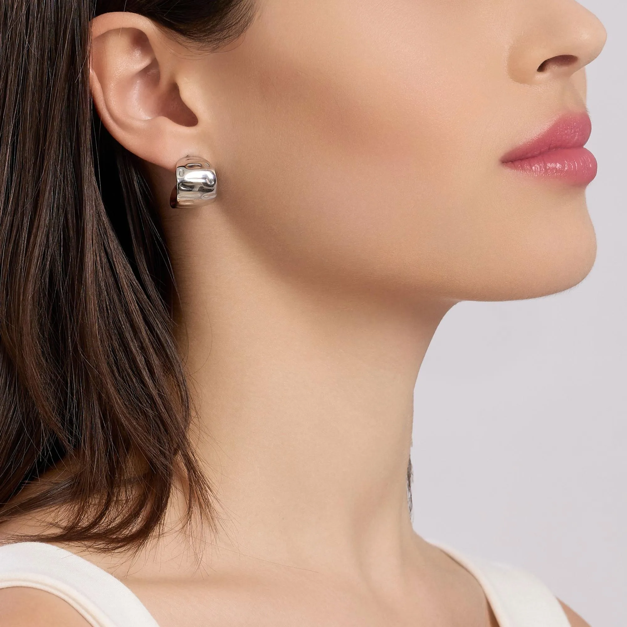 Orecchini semicerchio in acciaio martellato.