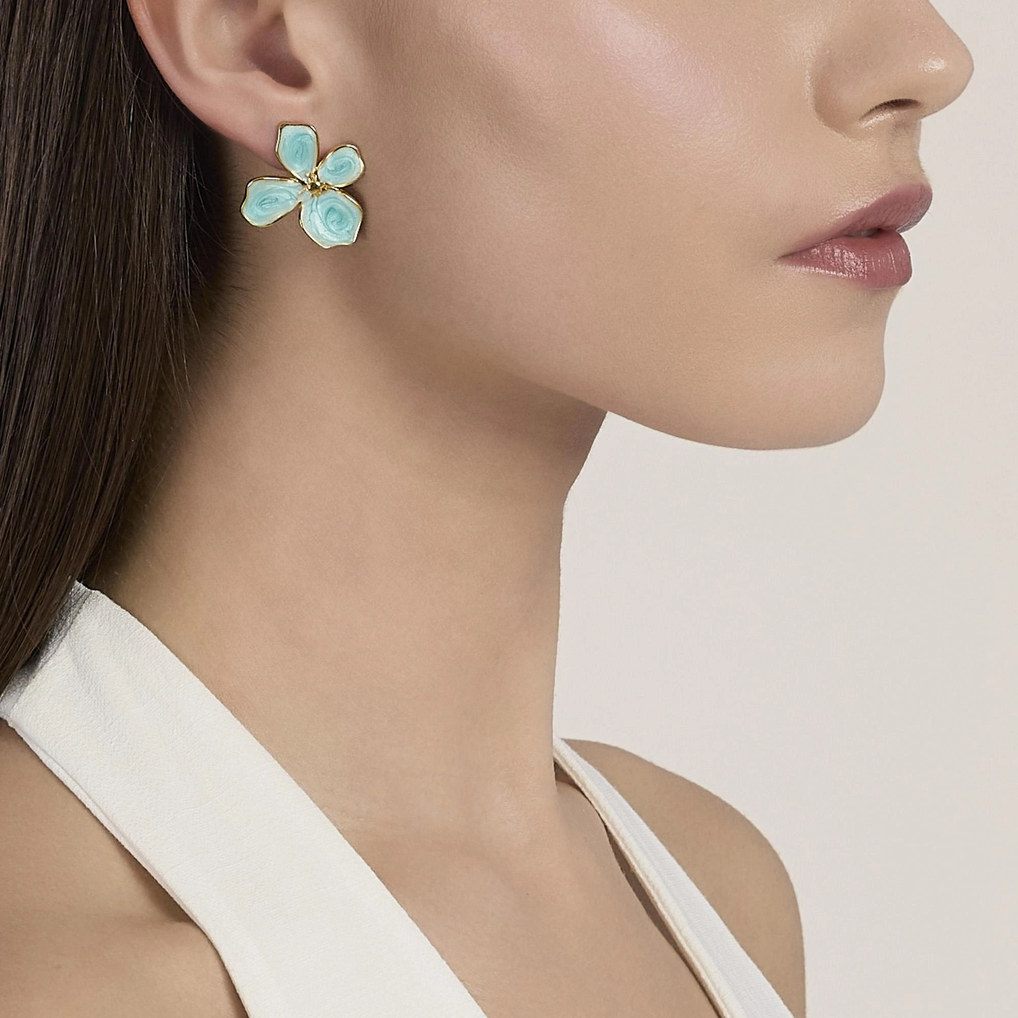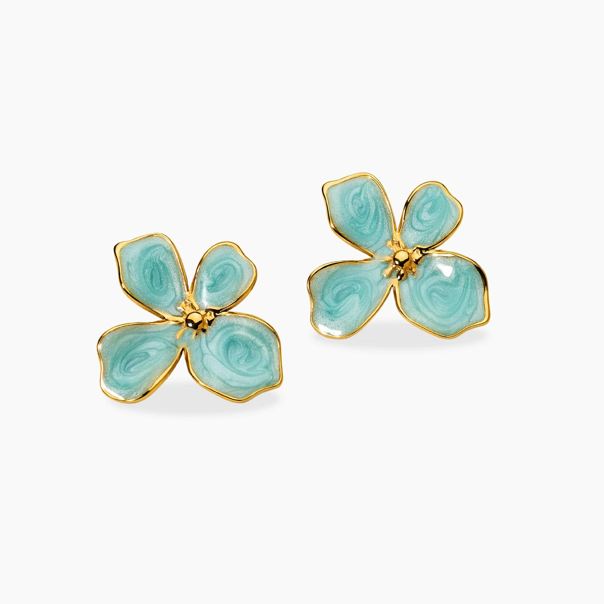 Orecchini fiore in acciaio dorato smaltati azzurro.