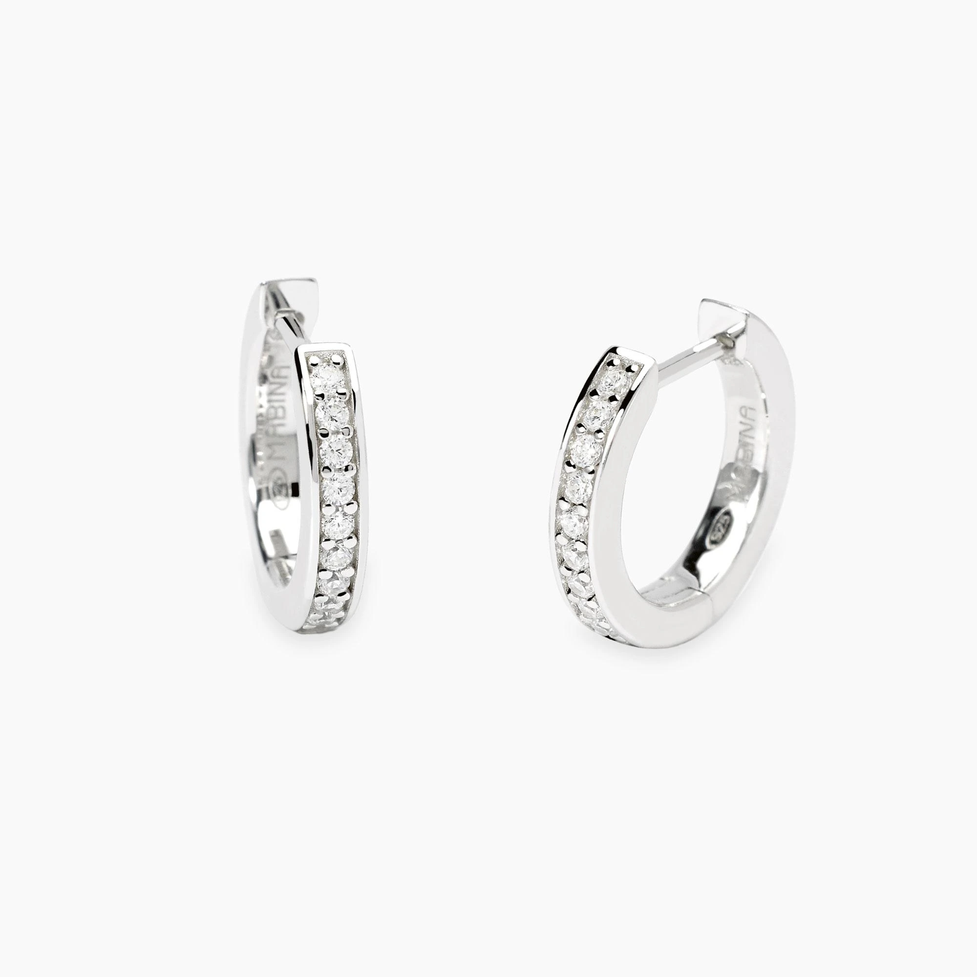Orecchini a cerchio in argento rodiato con diamanti lab-grown 0,01 ct.
