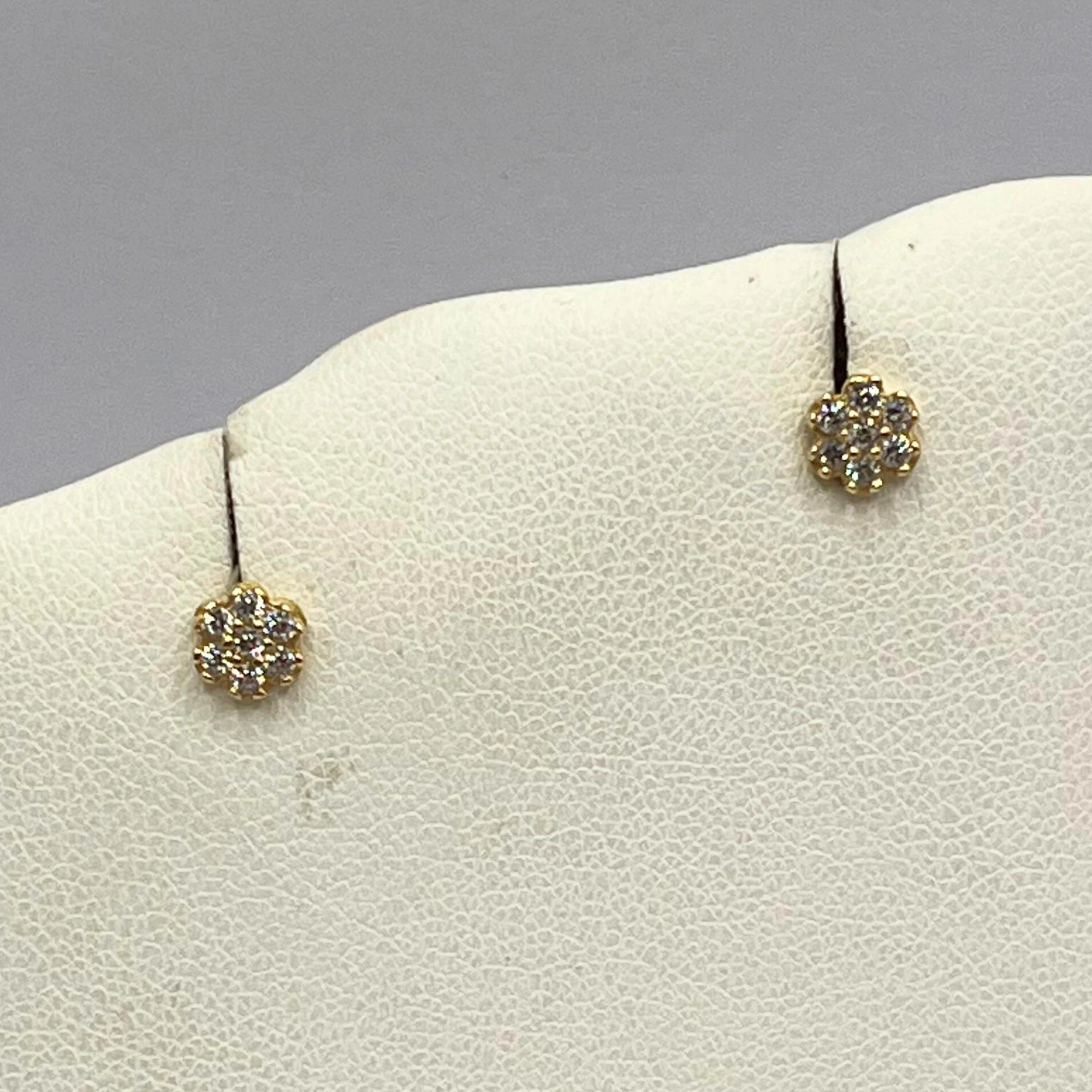 Orecchini a lobo da donna in oro giallo 9kt a forma di fiorellino impreziositi da zirconi.